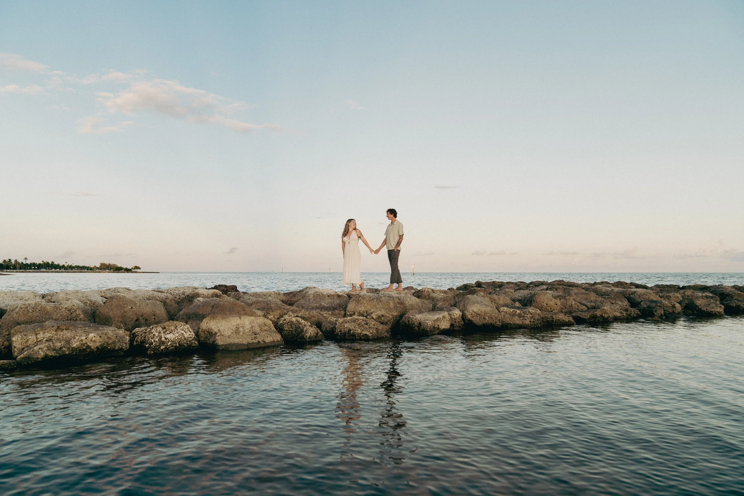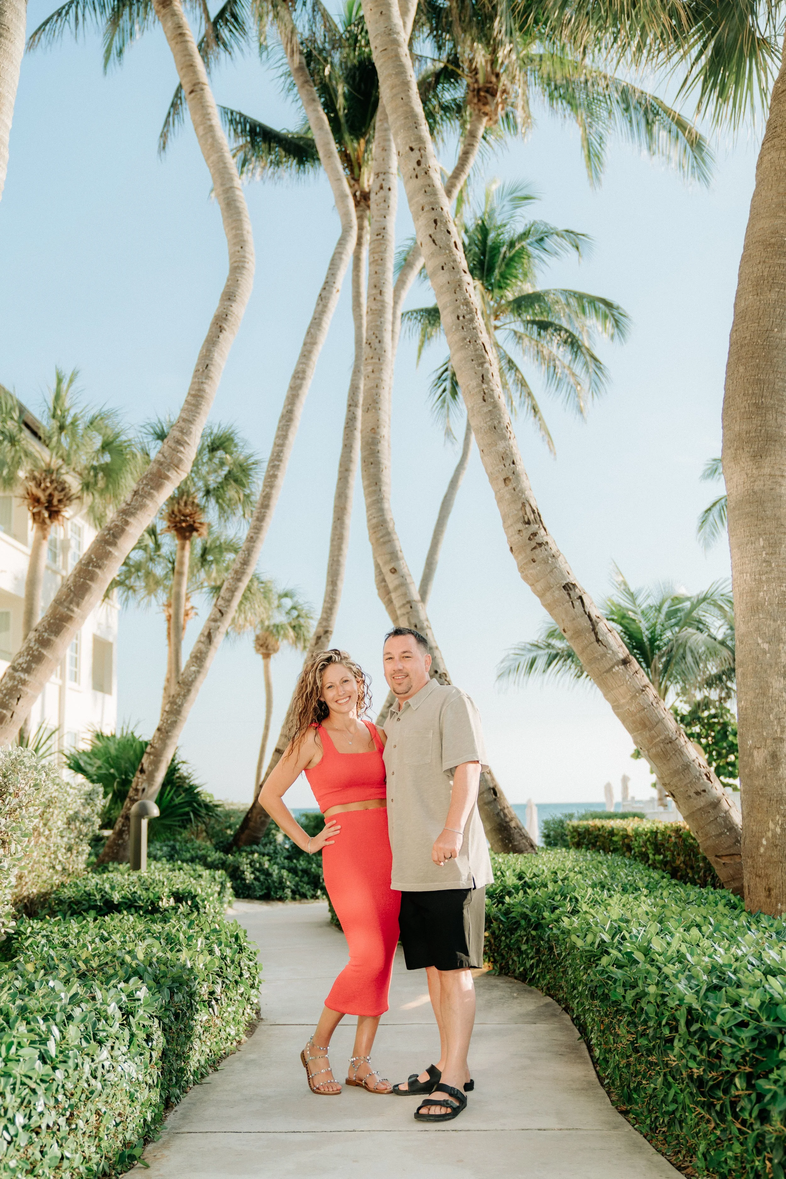 The Casa Marina area offers a more polished, resort-style look with tall palms, soft sand, and clean, minimal architecture. The vibe is elevated yet relaxed — perfect for couples who want “barefoot luxury” photos or branding clients looking for a timeless coastal backdrop.