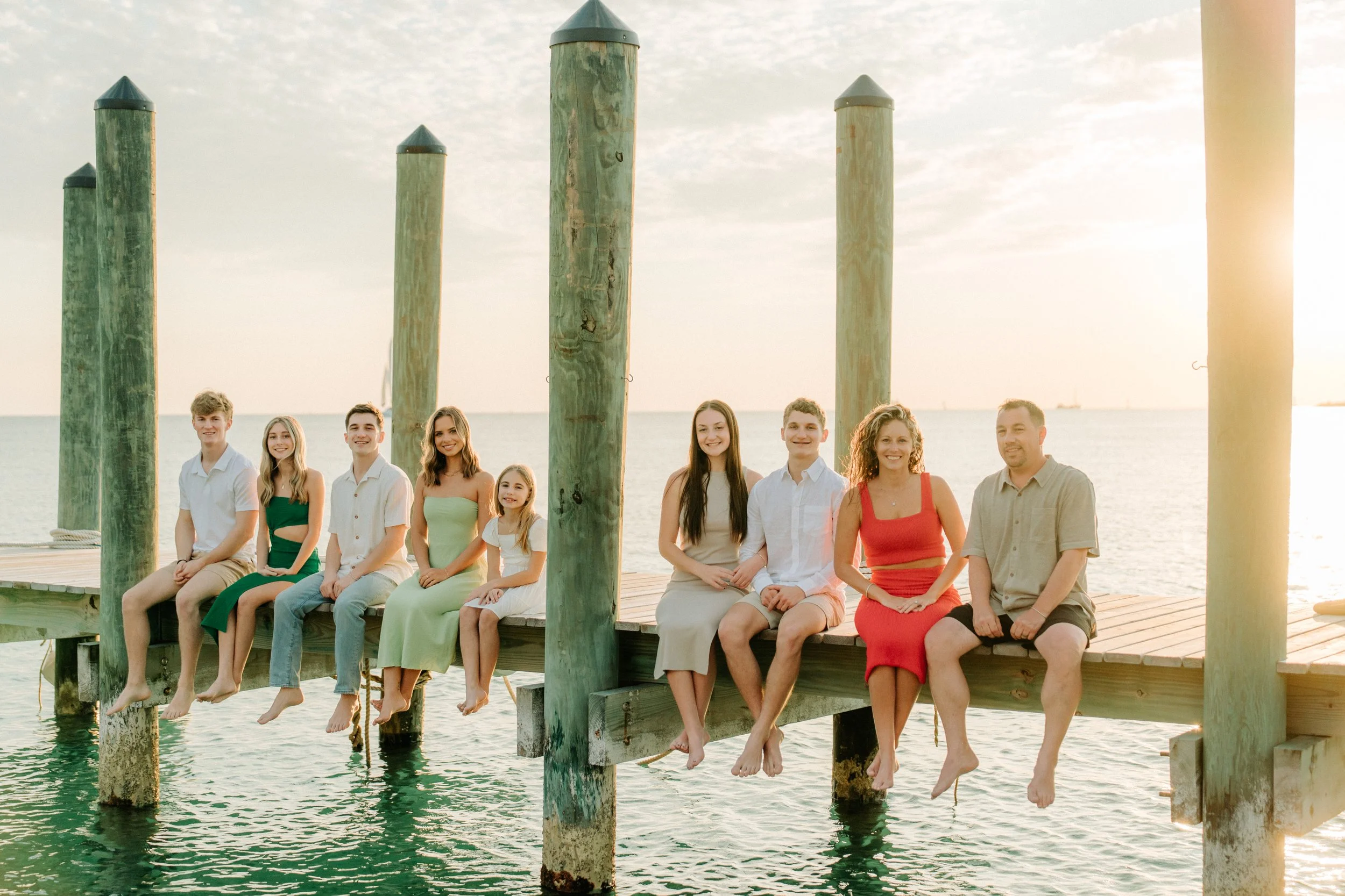 Higgs Beach is another favorite for that soft, breezy Key West energy. Its white pier, rows of palms, and pastel-blue water create the perfect backdrop for easy, natural portraits. It’s especially beautiful during sunrise when the light is gentle and colors are muted.
